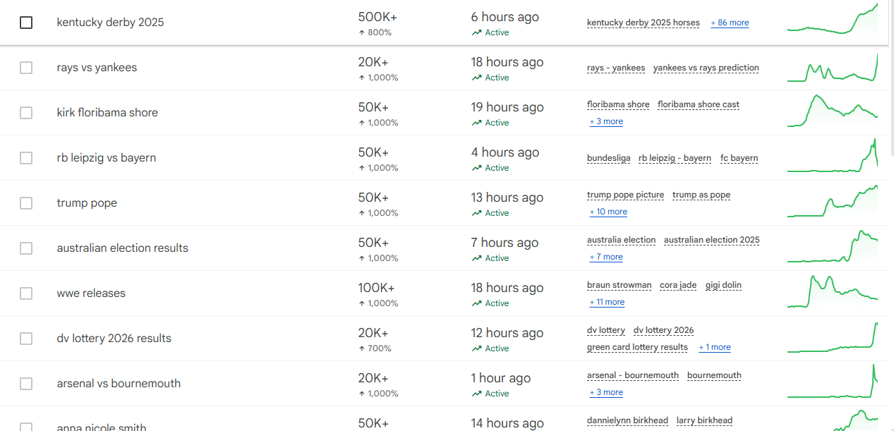 🧐오늘의 구글 트렌드를 살펴보면! 아래와 같이 대망의 1등은 제 151회 켄터키 더비인 것을 볼 수 있습니다!